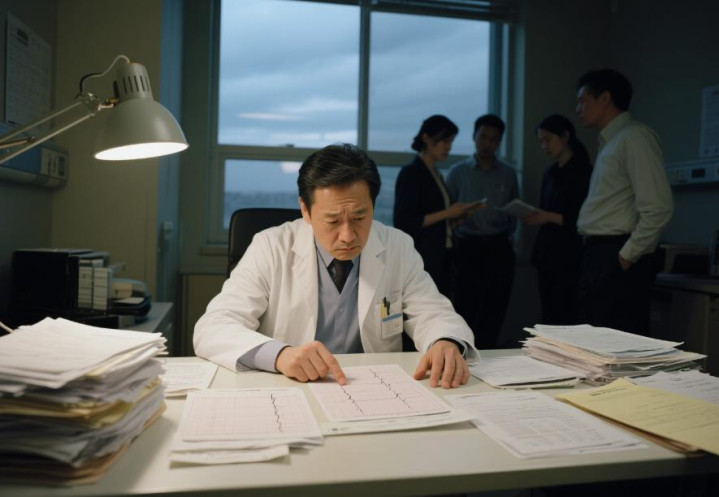 就在医生们陷入困境时,医院的内科中心迎来了一位特殊的指导专家——顾教授。听完病史,他眉头微皱,神色凝重地接过病例。几十年的研究经验让他对这种没有预警的猝死格外敏感。顾教授一页一页翻阅徐国跃的检查资料,先是盯着动态心电图上那些看似无害的偶发室早,然后又在实验室报告上停顿良久。他没有立刻说话,而是反复确认细节,像是在捕捉一条隐藏很深的线索。